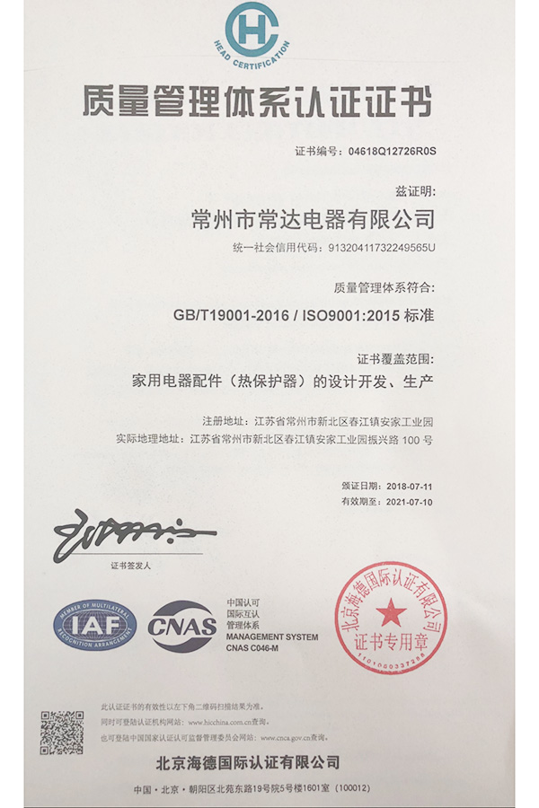 質(zhì)量管理體系證書